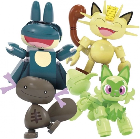 - Bevat 4 Pokémon om te bouwen: de figuren Sprigatito, Meowth, Wooper en Munchlax.