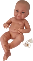 De realistische babypop Llorens New Born meisje met een volledig vinyl lichaam van 40 cm is levensecht – elk detail van het babylichaampje is vastgelegd, inclusief schattige plooitjes en geslacht. Dankzij het waterbestendige ontwerp kan ze voorzichtig worden gebaad, is ze poseerbaar en kan ze ook zitten. Handgemaakt in Spanje, aanbevolen vanaf 3 jaar. Realistische details, volledig vinyl lichaam geschikt om te baden, poseerbare, scharnierende ledematen, hoogwaardige Spaanse handgemaakte productie.