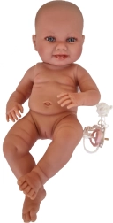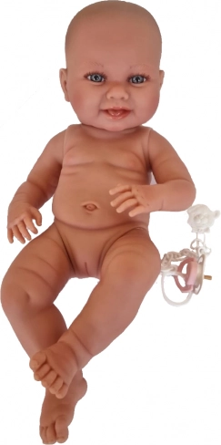 Dankzij het waterbestendige vinyl is de pop geschikt voor in bad – let er alleen op de wimpers te beschermen zodat ze niet nat worden. In de verpakking zit een fopspeen als decoratief accessoire. De pop is met de hand gemaakt in Spanje en kan worden aangevuld met originele LLORENS kleding voor maat 40–42 cm.