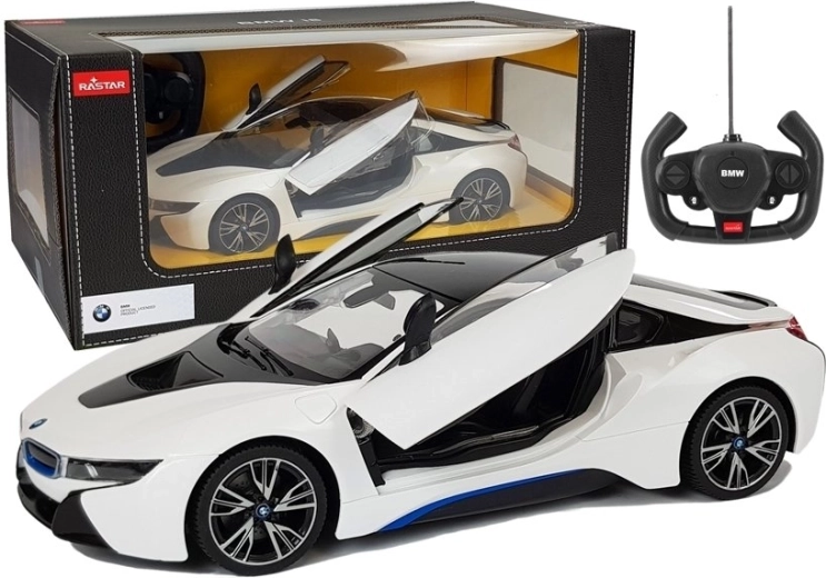 Word meester achter het stuur met het gelicentieerde model van de BMW i8 van RASTAR op schaal 1:14. Deze leuke en nauwkeurig uitgewerkte RC-auto biedt 2,4 GHz afstandsbediening, lichteffecten, rubberen banden en een realistisch interieur. Dankzij de geveerde ophanging rijdt hij soepel en stabiel, met een topsnelheid tot 9 km/u voor plezier voor jong en oud.