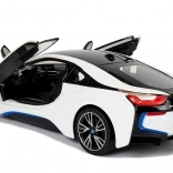 De gelicentieerde RC-auto BMW i8 in elegant wit verrast met de gedetailleerde afwerking van zowel carrosserie als interieur. De voor- en achterlichten gaan branden tijdens het rijden, wat zorgt voor extra realisme en betere oriëntatie tijdens het spelen.