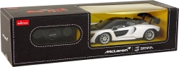 De elegante witte carrosserie met opvallende aerodynamische elementen en getinte ramen verwijst trouw naar de iconische MCLAREN Senna.