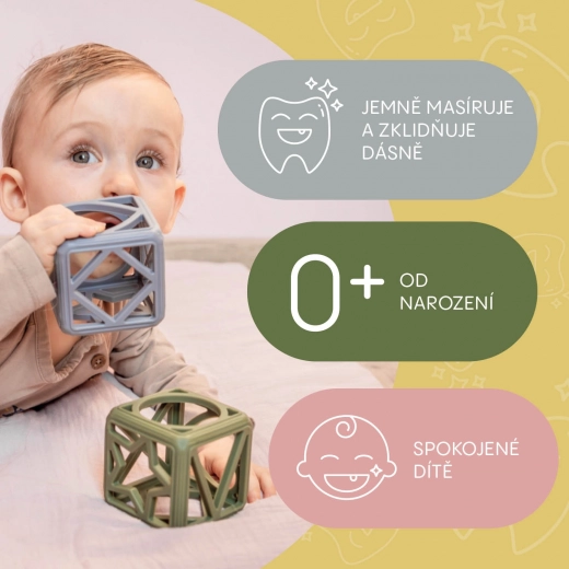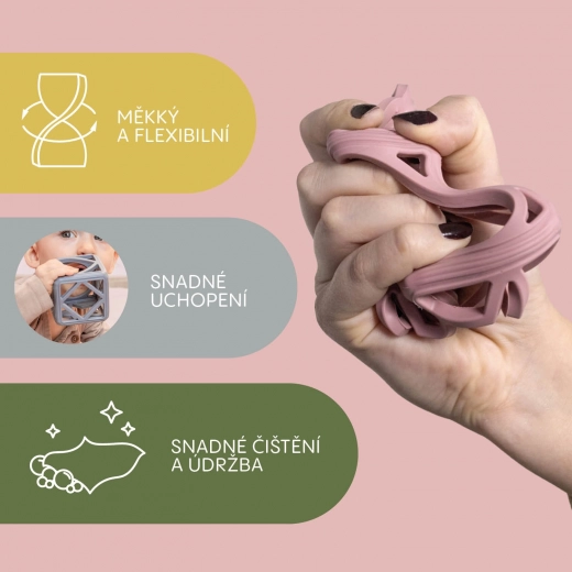 Help je baby de uitdagende periode van doorkomende tandjes door met de siliconen bijtring Square. De unieke geometrische vorm ligt perfect in kleine handjes en biedt een effectieve massage van het tandvlees, die het ongemak bij het doorkomen van tandjes vermindert.