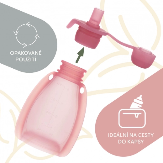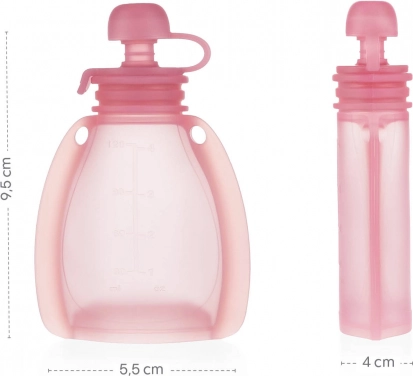 Zorg voor een verse en gezonde snack voor je kind met ons navulbare siliconen zakje, wanneer hij of zij er maar zin in heeft. Met deze praktische hulp kun je thuis fruitpuree of andere favoriete lekkernijen bereiden die je mee kunt nemen op een uitstapje, wandeling of naar school. Dankzij de veilige afsluitdop blijft de inhoud vers en beschermd tegen morsen.