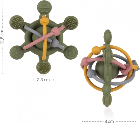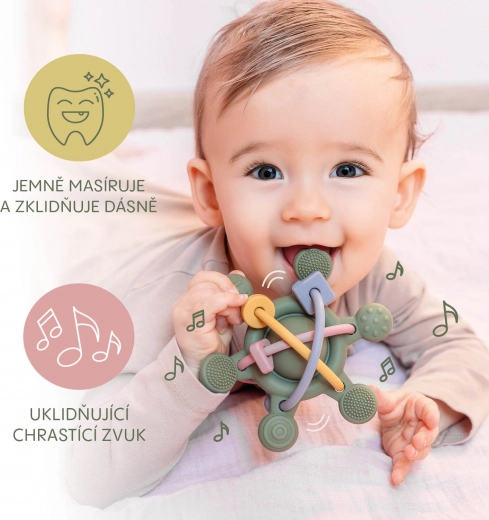 Ontdek de vreugde van ontdekken met onze zachte siliconen rammelaar, speciaal ontworpen voor kleine handjes. Met verschillende texturen en vormen is hij ideaal voor gevoelige tandvlees, waardoor het doorkomen van de eerste tandjes wordt verzacht. Deze rammelaar biedt niet alleen een zachte zintuiglijke stimulatie, maar ondersteunt ook de ontwikkeling van de motorische vaardigheden van je kindje. Vrolijke kleuren en het aangename rammelgeluid houden de aandacht vast en maken de periode van doorkomende tandjes aangenamer.