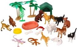 Met deze set ontvang je een brede selectie figuren van huisdieren en hun accessoires, zoals hondenhokken, waterbakken en botten.