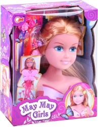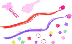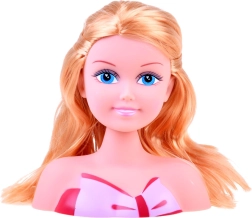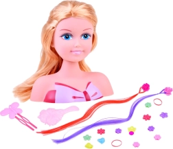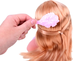 Elegante kapperspop met prachtige blonde haren en accessoires voor het maken van kapsels die waarschijnlijk elke kleine kapper zullen aanspreken. Het model heeft lang blond haar, voor de styling worden twee gekleurde lokken gebruikt, in de kleuren paars en rood. Clips en kralen om in te vlechten zullen elk kapsel gemaakt door de kleine stylist versieren. Set bevat:<wstrong>