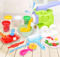Ontdek de creatieve kleiset met pers en vormpjes die kinderen vanaf 3 jaar urenlang laat knutselen. Met de uitdrukpers en verwisselbare opzetstukken maak je spaghetti, tagliatelle, bloemetjes en churros. Inclusief 4× klei (rood, geel, wit, groen) en een uitgebreide set accessoires voor kleine koks en kunstenaars.