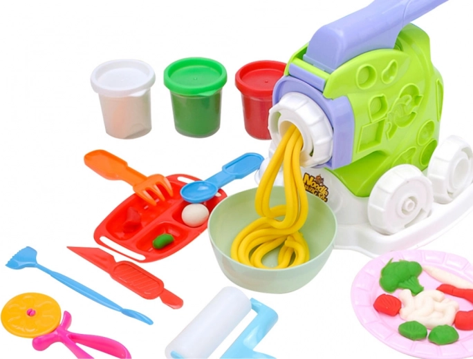 Deze kleurrijke set stimuleert de fantasie en fijne motoriek. Kinderen kunnen persen, rollen en uitsteken in allerlei vormen, kleuren mengen en hun eigen “lekkernijen” maken. De stabiele pers en gemakkelijk verwisselbare opzetstukken maken het knutselen leuk en veilig.