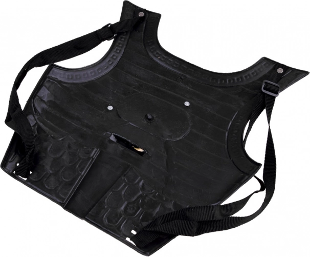 De lichte borstplaat met verstelbare bandjes zit comfortabel en geeft iedere kleine ridder vastberadenheid en stijl.