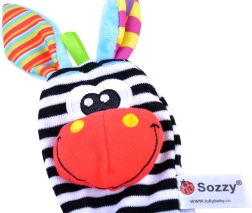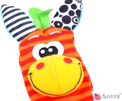 Rammelsokken en polsbandjes moedigen aan tot trappelen en met de handjes zwaaien, en ondersteunen zo op natuurlijke wijze motoriek en coördinatie.