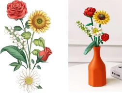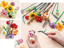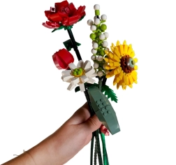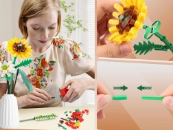 Deze creatieve bloemenbouwset bevat alles wat je nodig hebt om een indrukwekkend boeket te maken met een lengte van ongeveer 31,5 cm. Onderdelen in levendige kleuren en doordachte vormen maken het mogelijk verschillende soorten bloemen en bladeren te bouwen en zo een unieke decoratie te creëren voor in een vaas, op tafel of op een plank.