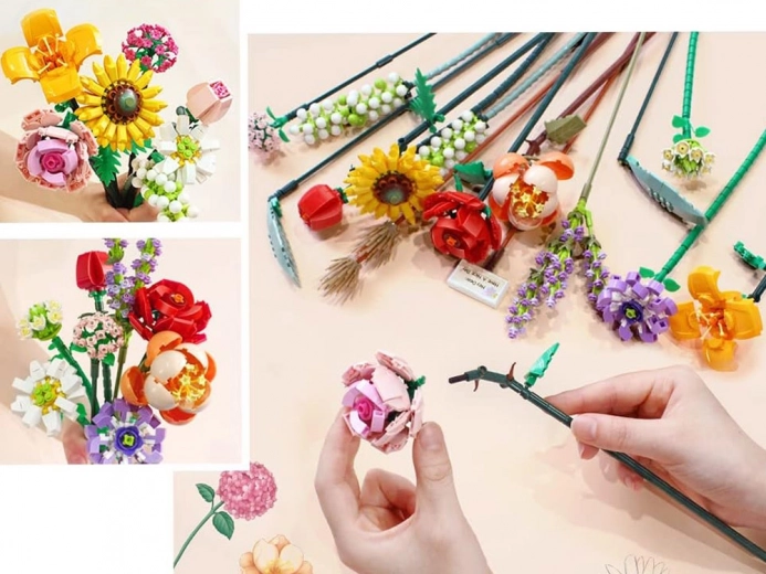 Bouwset bloemen – kleurrijk boeket van blokken, 568 stukjes