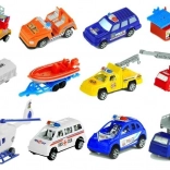 Inclusief politiewagen, hulpdiensten, brandweerwagen met uitschuifbare ladder, bus, werkvoertuigen en aanhangers met bagage en een boot.