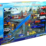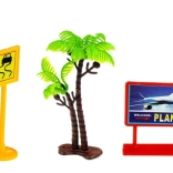 - Baanmat, groot vliegtuig, helikopter, 9 figuurtjes, 2 aanhangers met bagage, aanhanger met reddingsboot, bus, politiewagen, voertuig van de hulpdiensten, 2 brandweerwagens (1 met uitschuifbare draaibare ladder), luchthavenservicevoertuig met mogelijkheid om een aanhanger aan te koppelen, werkvoertuig met draaibaar element en uitschuifbaar hefplatform/ladder, palmbomen, slagbomen, lampen, verkeersborden