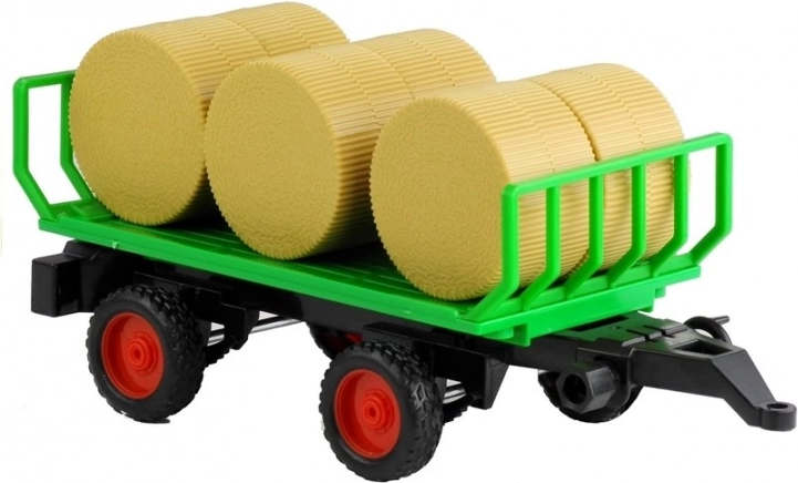 Groene tractor met aanhanger en hooibalen met licht en geluid 37,5 cm