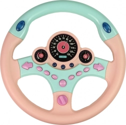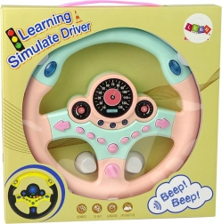 Interactief kinder-stuur in roze‑turkooizen kleur biedt een realistische rijsimulator met geluiden en licht. Het heeft 9 functionele knoppen waaronder knipperlichten, claxon en geluiden van hulpdiensten. Verlichte “meters” en starten met een sleutel versterken de rijbeleving en helpen kinderen tegelijk de basis van de verkeersregels onder de knie te krijgen.