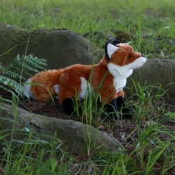 De pluchen vos heeft realistische kenmerken en hoogwaardige materialen, waardoor het een geloofwaardige imitatie van een echte vos is.