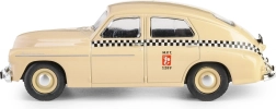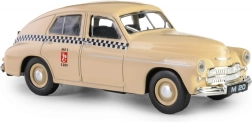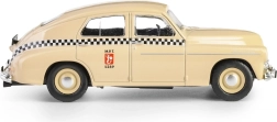 Historiserend model van de Warszawa M20 taxi in een zandkleurige tint brengt de nostalgie van het naoorlogse tijdperk tot leven en is ideaal voor liefhebbers van auto’s uit de PRL-periode.