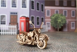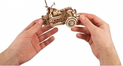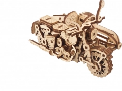 De houten mechanische puzzel van de militaire vrachtwagen is geïnspireerd door echte voertuigen ontworpen voor uitdagende omstandigheden. Dit model imiteert elke belangrijke onderdeel van de vrachtwagen perfect, inclusief draaibare wielen en een openende motorkap. Er is ook een brandstoftank en een reserveband inbegrepen.