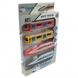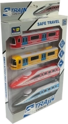 Deze kleurrijke set brengt de wereld van het spoor direct naar de kinderkamer. Je vindt er vier voertuigen – twee moderne locomotieven geïnspireerd op de hogesnelheidsPendolino (in rood en grijs-blauwe combinatie) en twee metrowagons (geel en rood). Elk onderdeel is uitgevoerd met oog voor realistische details zoals ramen, deuren, een voorruit met “ruitenwissers” en dakonderdelen die doen denken aan pantografen.
