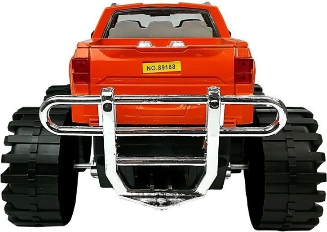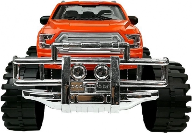 De monstertruck kan over oneffen terrein rijden; de grote wielen en het verhoogde onderstel geven de rit een realistisch gevoel. De auto op de aanhanger kan gemakkelijk worden geladen en gelost, wat de motoriek en verbeelding van kinderen stimuleert. Perfect als cadeau – verpakt in een doos met transparant venster.