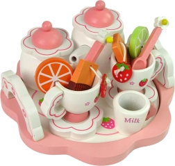 De set bevat alles voor een perfect “middagthee”: theepot, kopjes met lepeltjes, melkkan en schattige accessoires zoals fruitpartjes en theezakjes. Kinderen oefenen samenwerking, communicatie en motoriek tijdens dagelijks spel.