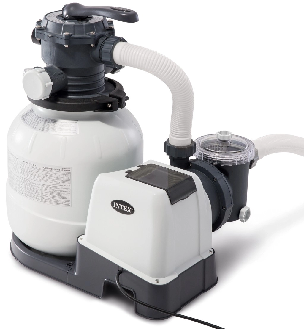 De krachtige zandfilter INTEX Krystal Clear met een doorstroming van 7,9 m³/u houdt het water in uw zwembad kristalhelder. Biedt een 6-wegklep, manometer, geïntegreerde timer en voorfiltermand om vuil op te vangen. De duurzame tank en Hydro Aeration Technology zorgen voor efficiënte filtratie en eenvoudiger onderhoud.