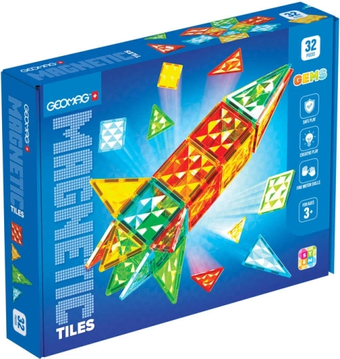 GEOMAG Gems Rocket is een magnetische bouwset die kinderfantasie tot leven brengt. Dankzij sterke magnetische verbindingen en transparante kleuren kunnen kinderen eenvoudig raketten, ruimteschepen en unieke 3D-vormen maken. De afzonderlijke tegels in de vorm van driehoeken en vierkanten trekken intuïtief naar elkaar toe, waardoor bouwen snel, leuk en motiverend is.