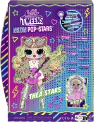 Bereid je voor om de wereld van popsterren te betreden met L.O.L. Surprise Tweens Neon Pop Stars - Thea Stars! Deze unieke pop is uitgerust met stijlvolle kostuums, elegante schoenen, een modieuze handtas, een mooie gitaar, schattige hartvormige bril en decoratieve oorbellen. Elk detail is ontworpen voor mode- en muziekliefhebbers.
