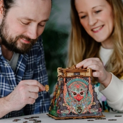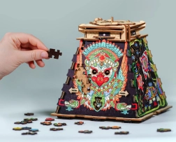 Laat je meevoeren door het mysterie van de Azteekse piramide. Met meer dan 200 stukken nodigt deze houten puzzel uit om verborgen sporen te ontdekken en logische taken op te lossen. Het openen van mechanische sloten onthult een verborgen ruimte waar je een persoonlijke boodschap of een klein voorwerp kunt plaatsen. Dankzij de illustraties van Steve Simpson en Joaquín Nava is de puzzel niet alleen een uitdaging, maar ook een kunstwerk.