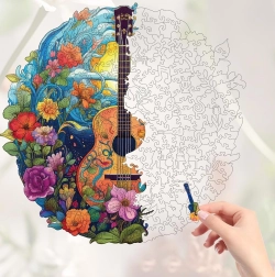 Deze prachtige puzzel met een gitaar versierd met bloemen is gemaakt van hoogwaardig hout van 5 mm, dat milieuvriendelijk is en een ecologisch bewuste aanpak benadrukt. Elk van de 200 stukjes is nauwkeurig met een laser gesneden, wat zorgt voor eenvoudig puzzelen en perfecte pasvormen. Dankzij de UV digitale druktechniek is het beeld helder en rijk aan details, wat uw puzzelervaring zal verbeteren.