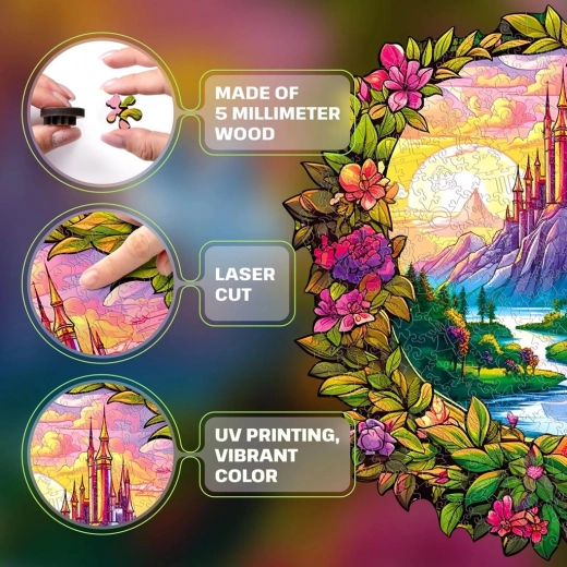Ontdek de magie van puzzelen met een houten puzzel met het thema van een magisch bos. Deze set biedt 200 unieke stukjes van 100% FSC®-hout, nauwkeurig laser-gesneden en met premium kwaliteit. Dankzij de UV-digitale print springen realistische, levendige kleuren eruit voor een fantastisch visueel resultaat. De puzzel stimuleert logisch denken en fijne motoriek en is leuk voor zowel kinderen als volwassenen.