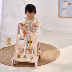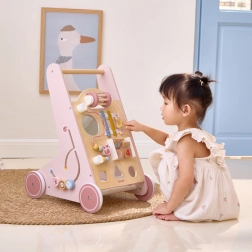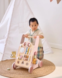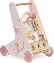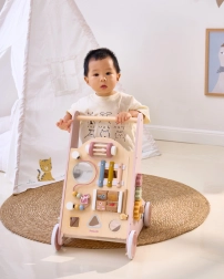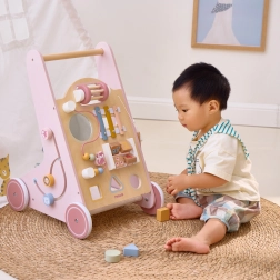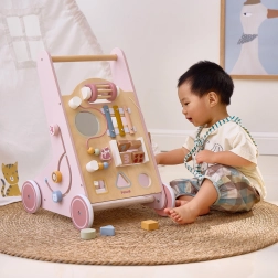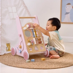 We presenteren de houten loopwagen voor peuters PolarB in roze kleur, ontworpen voor kinderen vanaf 18 maanden. Het combineert leuke activiteiten zoals kijken in de spiegel, draaiende blokken, glinsterende kralen, vormen sorteren en spelen op een xylofoon. Met deze loopwagen ontdekken uw kinderen de wereld om hen heen op een veilige manier.