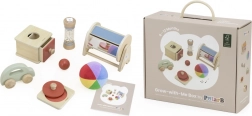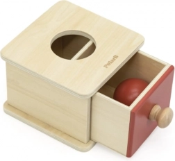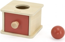 De houten box met lade en bal leert dat voorwerpen blijven bestaan, ook wanneer ze uit het zicht zijn. Stimuleert concentratie, geduld en de eerste logische verbanden tijdens het inwerpen en terugvinden.