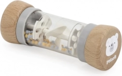 De doorzichtige rammelaar met kraaltjes maakt zachte, rustgevende geluiden en nodigt uit om te verkennen. Je kind traint het gehoor, visueel volgen en de oog‑handcoördinatie door te schudden, draaien en het van de ene naar de andere hand te geven.