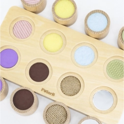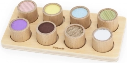 Het tastbord met diverse oppervlakken wekt nieuwsgierigheid en helpt kinderen texturen en kleuren te onderscheiden. Ondersteunt sensorische integratie, woordenschat en de fijne motoriek van de vingers.