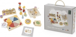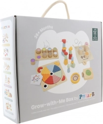 Ontdek de houten educatieve box POLARB GROW-WITH-ME voor kinderen 36+ maanden. De set ontwikkelt zintuigen, fijne motoriek, creativiteit en emoties dankzij doordachte activiteiten. Gemaakt van ecologische materialen en verpakt in een praktische draagbare doos met handvat.
