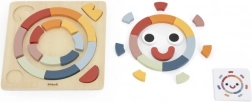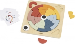 De houten puzzel met opvallende kleuren en voorbeelden leert kinderen plannen, patronen volgen en vormen nauwkeurig leggen. Traint logica, geduld en hand-oogcoördinatie.