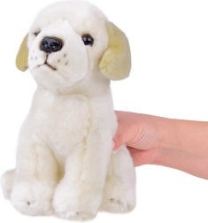 Deze zittende pluchen labrador is een trouwe weergave van het populaire ras. De zachte buitenkant nodigt uit om te knuffelen, terwijl de plastic oogjes en neus het speeltje een realistische expressie geven. Dankzij de hoogwaardige afwerking is hij geschikt voor dagelijks spelen en als decoratie in de kinderkamer.