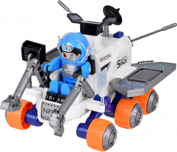 De rover is geïnspireerd op echte verkenningsvoertuigen – je vindt er een satellietschotel, een “detector” en paneeldetails die zonne-energie suggereren voor een geloofwaardig wetenschappelijk tintje. Dankzij de opvallende kleuren en duurzame afwerking bedenken kinderen gemakkelijk hun eigen ruimtemissies.