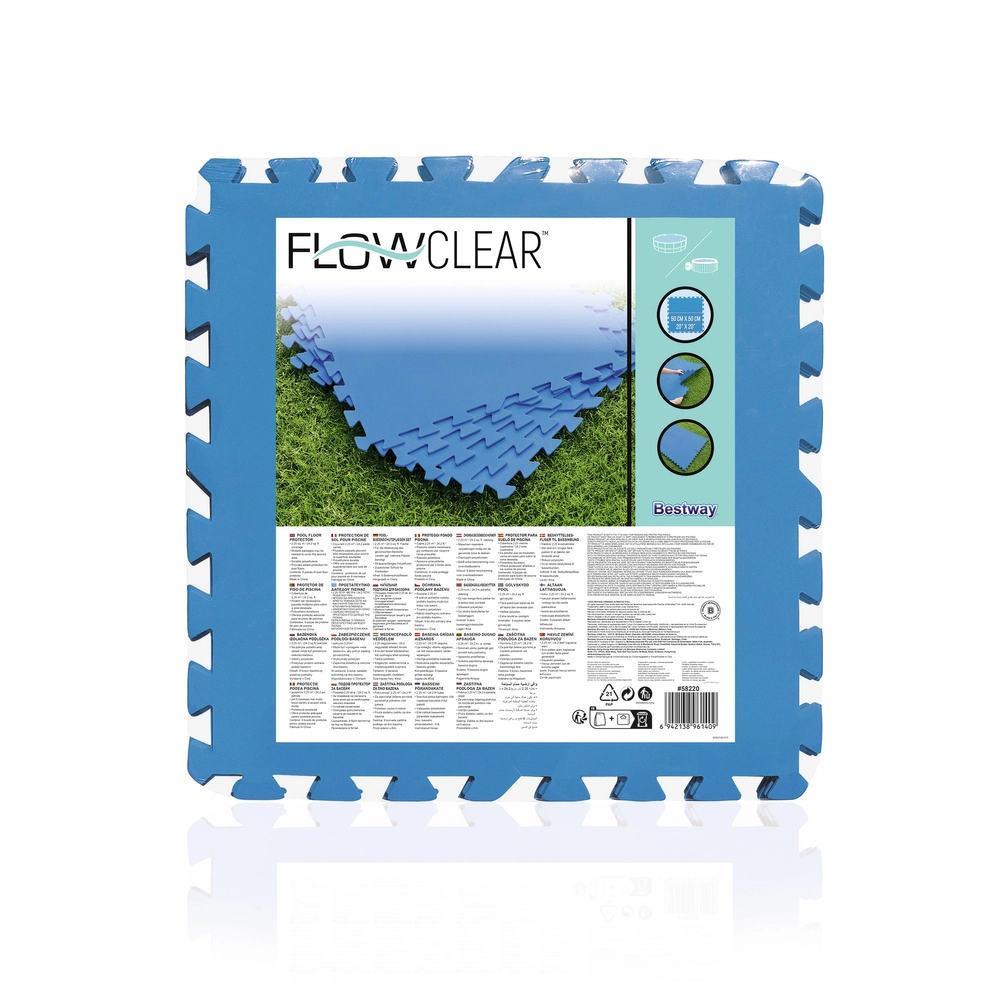 De set van 9 koppelbare BESTWAY Flowclear schuimtegels beschermt de bodem en omgeving van je opzetzwembad of spa. Ze bieden betrouwbare bescherming, thermische isolatie en anti-slip comfort. Dankzij de eenvoudige klikverbinding breid je het oppervlak snel uit, precies naar wens.