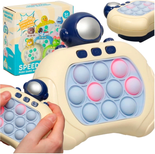 Dit interactieve anti-stress spel in astronautenontwerp combineert een rustgevend “pop”-effect met slimme licht- en geluidsfeedback. Dankzij vier modi oefenen kinderen hun reactievermogen, concentratie en geheugen, terwijl ze zich prima vermaken. Het compacte lichaam en de prettige bediening liggen goed in de hand voor kinderen vanaf 6 jaar.