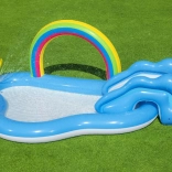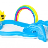 Kleurrijk kinderzwembad met regenboog en zonnetje