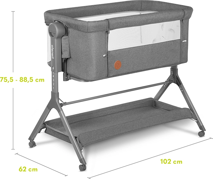 De afneembare zijwand maakt samen slapen met de ouders mogelijk, wat niet alleen comfort biedt, maar ook veiligheid dankzij de bevestigingsbanden aan het ouderlijk bed. Daarnaast is er opbergruimte voor speelgoed of benodigdheden en een praktische tas voor het eenvoudig meenemen van het opgevouwen bedje.