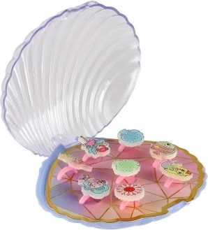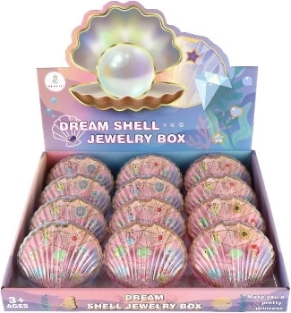 Het schelpvormige doosje bewaart niet alleen de ringetjes, maar dient ook als een prachtige decoratie in de kinderkamer.