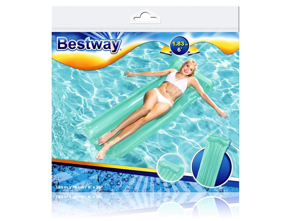Het Bestway Deluxe opblaasbaar matras biedt comfortabel liggen op het water dankzij het geïntegreerde kussen en de gesegmenteerde kamers. Het stevige PVC zorgt voor een lange levensduur en is bestand tegen zowel zout als chloorwater, terwijl het veiligheidsventiel ongewenst luchtverlies voorkomt.