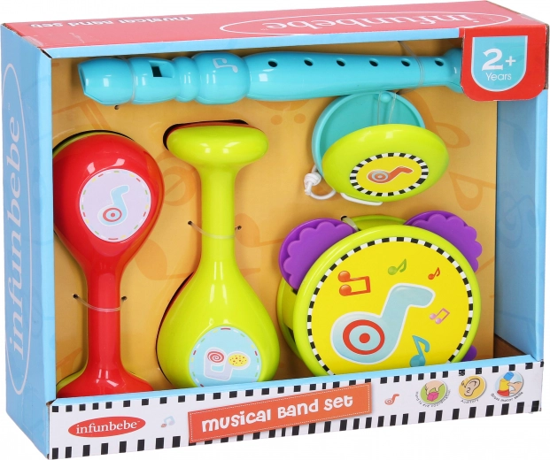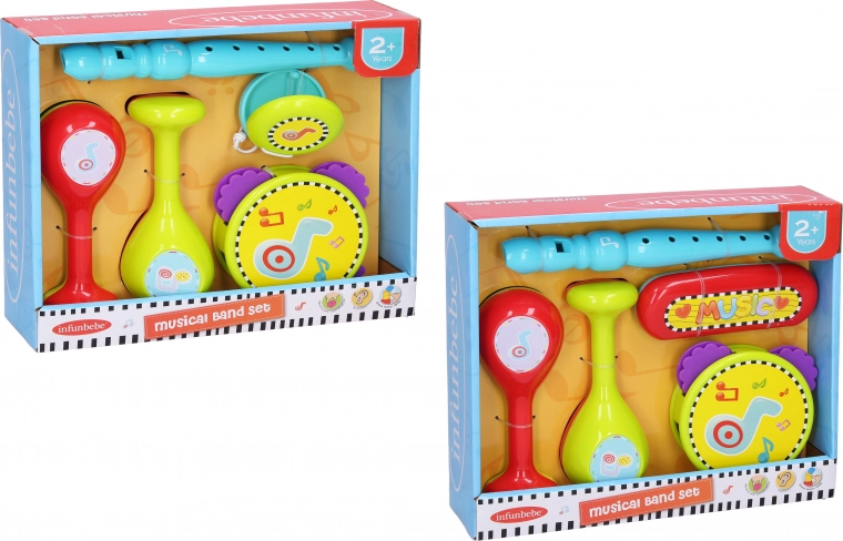 Deze kleurrijke set muziekinstrumenten biedt alles wat kinderen nodig hebben om klanken en ritmes te ontdekken. De set bevat maracas (2 st.), een mondharmonica, een blokfluit en een tamboerijn – een combinatie die coördinatie, gehoor en creativiteit stimuleert.