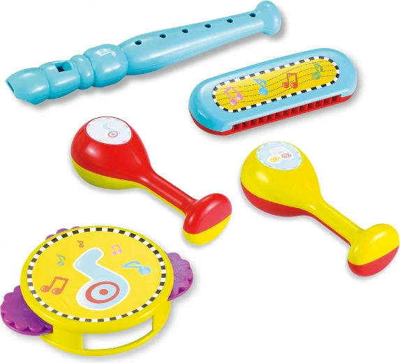 - Compleet set van 5 instrumenten: maracas (2 st.), mondharmonica, blokfluit, tamboerijn