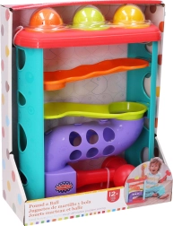 De hamerbaan is een klassieke, actieve speelset die kinderen motiveert om oorzaak en gevolg te verkennen. Na een tik rolt de knikker door de baan en ziet het kind direct het resultaat van zijn actie. Zo ontwikkelen motoriek, geduld en coördinatie zich spelenderwijs.